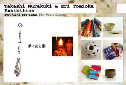 村久木孝志(陶芸家)冨岡映里(布作品、the teachers,M.A.G.O.)のコラボレーションエキシビション。